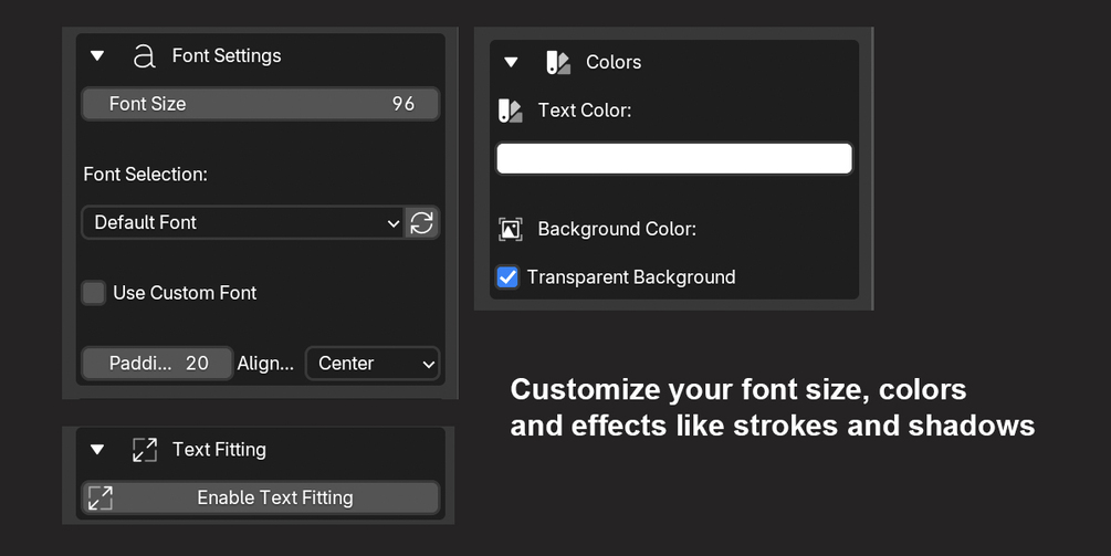 .blendor Blender’s config folder, refresh them, and import/export JSON bundles for backups or team sharing. - Adaptive fitting. Let the addon resize fonts within a min/max range to keep text safely within your canvas margins.
